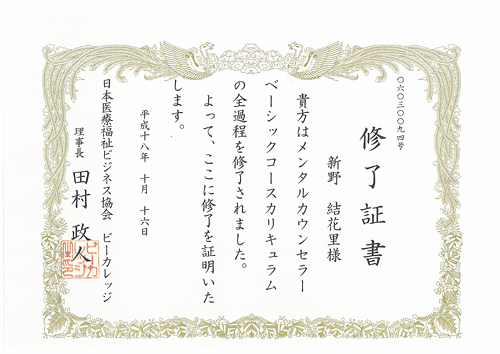 日本医療福祉ビジネス協会の資格をもった女性カウンセラーが、お悩みをうかがい、カウンセリングします。
